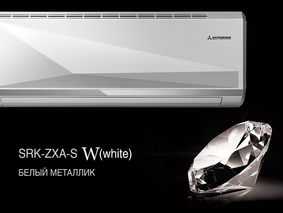 SRK-ZXA-S – новая серия инверторных настенных кондиционеров Mitsubishi Heavy Industries, второе название которой - DIAMOND, что переводится как «бриллиант». Корпус внутреннего блока имеет форму этого драгоценного камня и повторяет его выпуклые грани. Он утонченный, изящный и стильный. Впервые MHI предлагает своим покупателям цветные внутренние блоки. Доступно 4 варианта: белый металлик, черный глянец, серебристый металлик, бордовый металлик. Цвета блоков сложные, глубокие, имеют благородный металлический блеск.