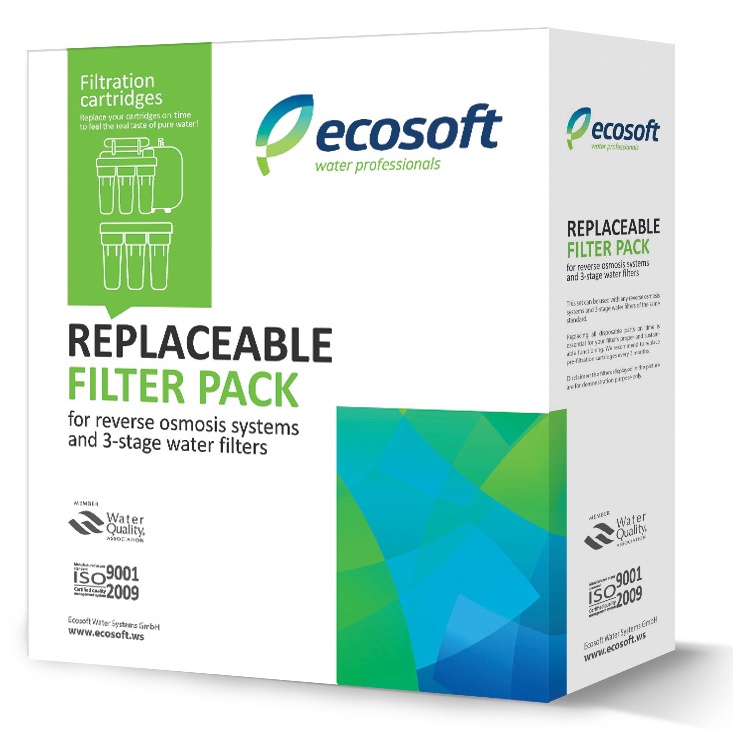 Назначение комплекта картриджей: предварительная очистка воды для защиты и эффективной работы мембранного элемента и системы обратного осмоса Ecosoft в целом.